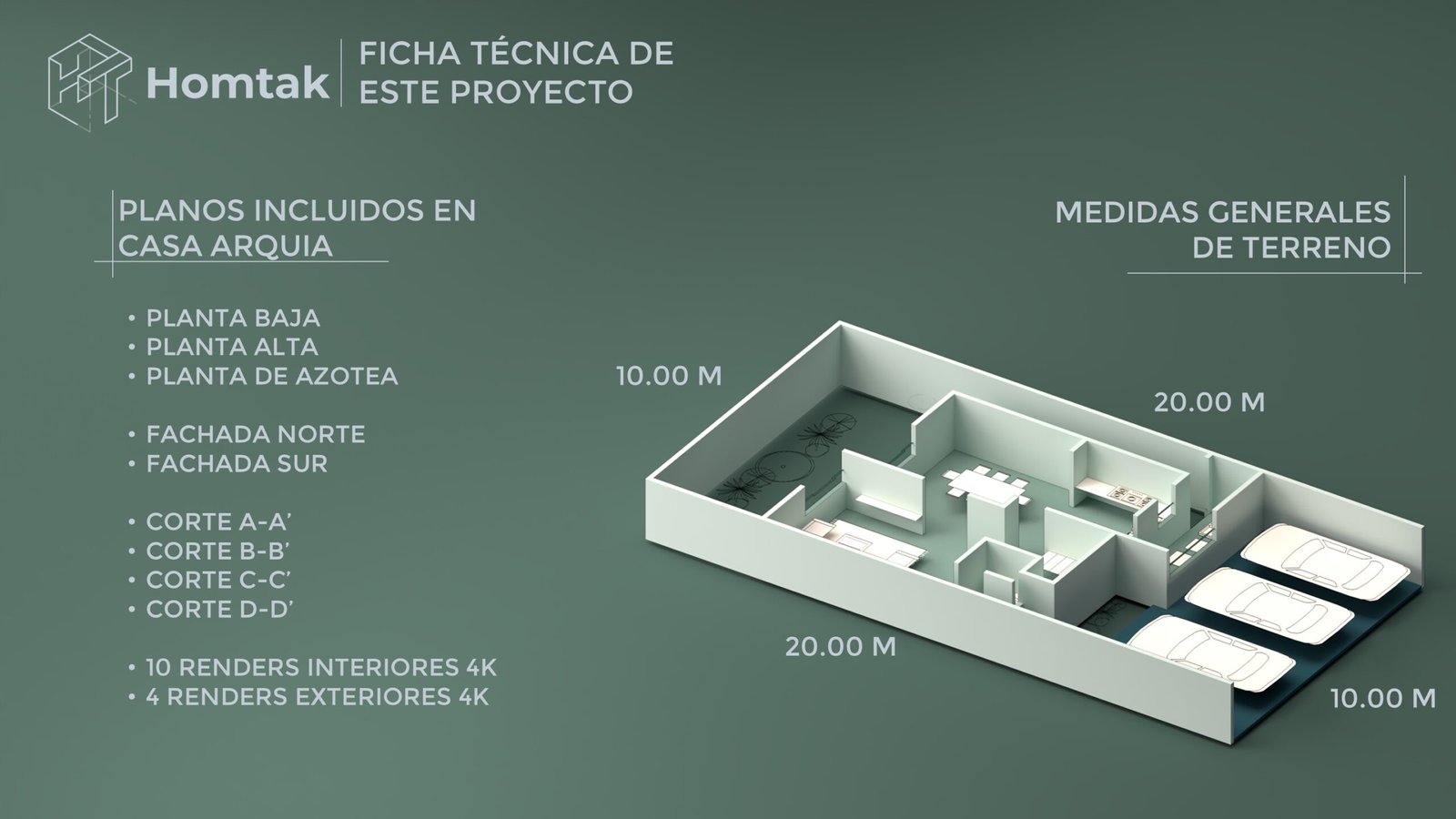 Verás todas las láminas, el archivo DWG editable, renders y otros elementos que incluye un proyecto Homtak.