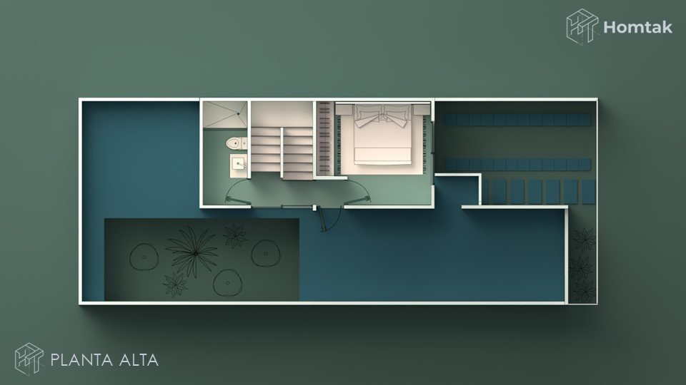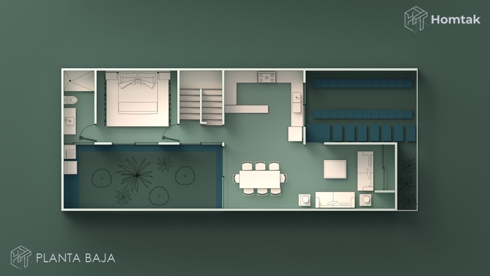 Verás todas las láminas, el archivo DWG editable, renders y otros elementos que incluye un proyecto Homtak.