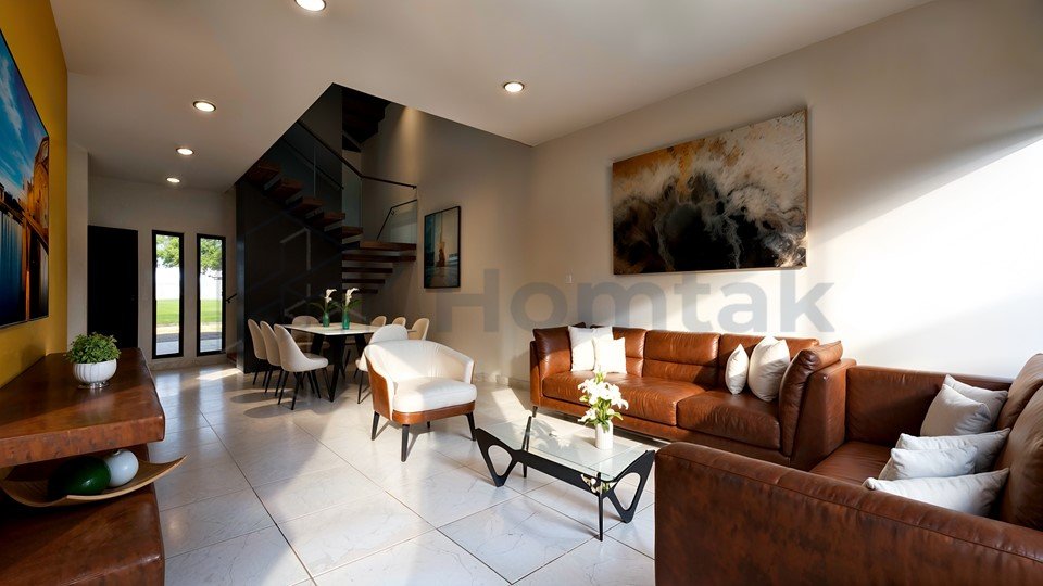 Con un terreno de 7.00 x 18.00 m, 3 recámaras, 3.5 baños y 2 niveles, Casa Equa presenta una fachada contemporánea de líneas limpias, volúmenes contrastantes y detalles en madera que aportan calidez. Con 193.90 m² de construcción, ofrece un diseño funcional que integra área de lavado, jardín y una cochera doble en un conjunto moderno y bien equilibrado.